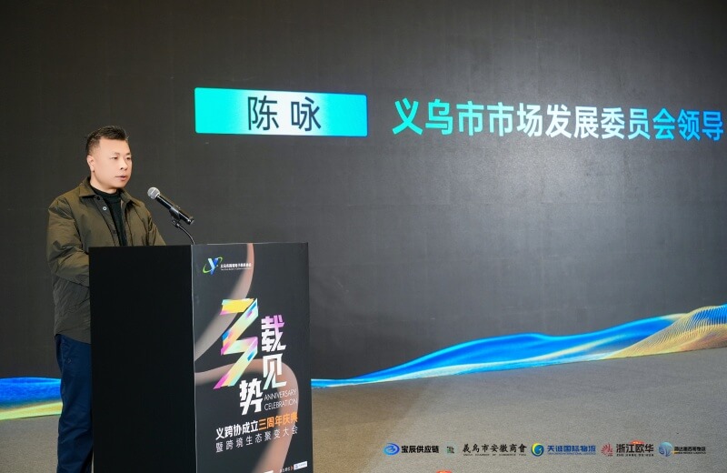义乌市市场发展委员会副主任陈咏发表重要讲话,勾勒义乌跨境电商三年飞跃,年交易额突破1600亿元。